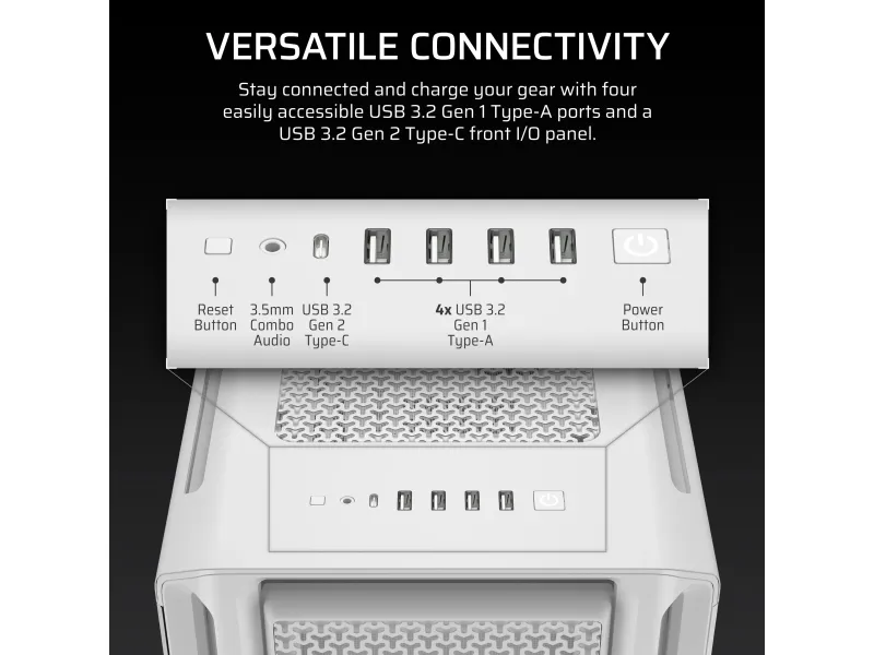 The CORSAIR 5000T mid-tower chassis combines style with functionality, making it an ideal choice for gamers and PC builders. It features a windowed tempered glass side panel, allowing users to showcase their internal components while providing easy access through hinged side panels. The chassis includes a removable front and top panel for straightforward installation and maintenance, along with a RapidRoute cable management system that ensures a clean and organized build. Enhanced cooling options are available with support for 120 mm, 240 mm, and 360 mm radiators, accommodating diverse setups for optimal airflow. With expansion capabilities, the 5000T provides a total of five internal bays, suitable for both 2.5" and 3.5" drives, and offers expansion slots for vertical and horizontal GPU mounting. The front panel connectors include USB 3.2 Gen 1 and USB-C 3.2 Gen 2 for speedy data transfer. The chassis is constructed with durable materials, including plastic and steel, to ensure long-lasting performance. Whether for gaming or professional use, the CORSAIR 5000T delivers aesthetic appeal and practical features that cater to every user's needs.