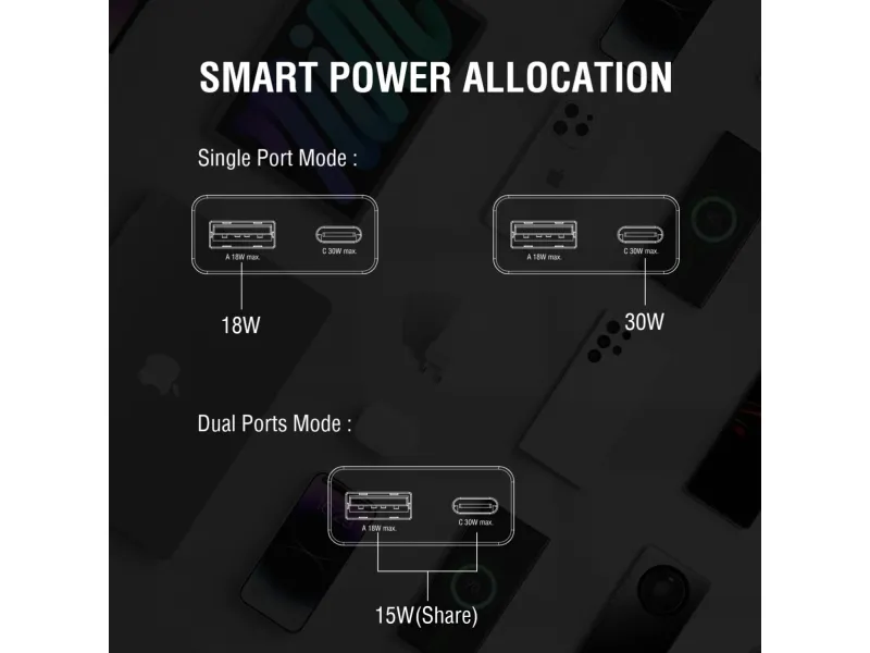 Huawei SuperCharge Protocol, Qualcomm Quick Charge 2.0, Qualcomm Quick Charge 3.0, Apple 2.4A, Samsung Adaptive Fast Charging, Power Delivery 3.0 + PPS, HiSilicon Fast Charging Protocol