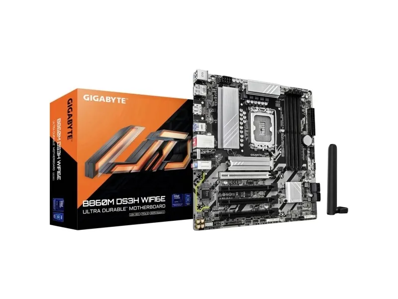 The GIGABYTE B860M DS3H WIFI6E motherboard combines essential features designed for performance and reliability. It comes with an Intel B860M chipset and supports Intel Core Ultra processors, ensuring efficient processing power. With a micro ATX form factor, this motherboard features four DIMM slots capable of supporting DDR5 RAM up to 4400 MHz, allowing for an efficient multitasking environment. The inclusion of multiple expansion slots ensures flexibility for adding additional components and graphics cards. Users can enjoy high-definition audio through its 8-channel sound card, providing an immersive audio experience.