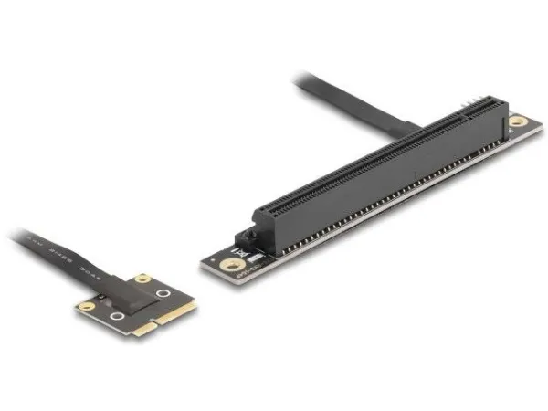 The Delock riser card is designed for connectivity in compact spaces. With a PCI Express 3.0 x16 expansion slot, it allows for high-speed connections while accommodating Mini Card installations. The 90° angled build optimizes airflow and keeps components organized, promoting an efficient workspace. A flexible, flat cable provided with a length of 0.2 m allows for easy routing and installation, making it suitable for various setups. Manage hardware effectively with this practical riser card solution.