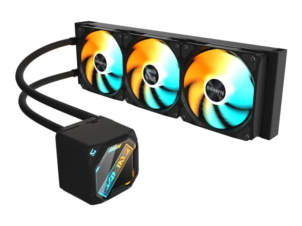 The GIGABYTE GAMING 360 processor liquid cooling system is engineered to elevate your system's performance while ensuring optimal thermal management. Equipped with three 120 mm ARGB fans, this cooling system delivers effective air flow of 61.61 cfm, allowing components to maintain peak performance even during intense gaming sessions. The daisy-chain design simplifies cable management, making it easier to maintain a clean and organized build. The magnetic top cover adds a distinctive touch to your setup, seamlessly blending functionality and aesthetics. Designed for compatibility with multiple socket types including AM4, LGA1200, LGA1700, AM5, LGA115x, and LGA1851, this cooling solution is versatile and adaptable to various systems. With its durable copper heatsink and aluminum radiator, the GAMING 360 ensures efficient heat dissipation while maintaining a low noise level of 13.8 - 35.8 dBA across a rotation speed range of 500-2200 rpm.