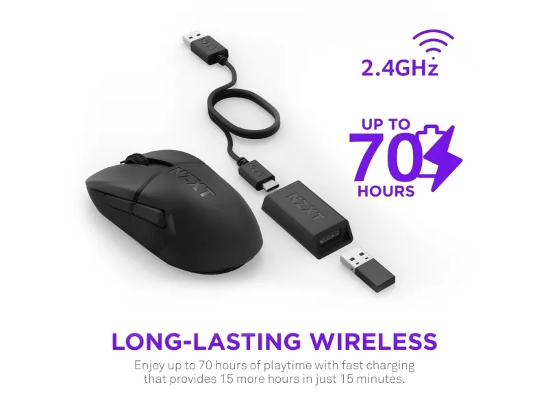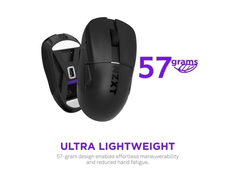 Personalize Your Play With NZXT CAM Change polling rates, adjust DPI, remap buttons, and create custom onboard profiles fit for any game.NZXT MS-101NB-01. Form factor: Right-hand. Movement detection technology: Optical, Device interface: RF Wireless, Movement resolution: 26000 DPI, Response time: 0.2 ms, Buttons type: Pressed buttons, Buttons quantity: 6, Scroll type: Wheel. Power source: Batteries. Product colour: Black