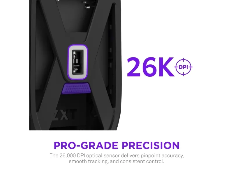 Optical Sensor Accurately detects subtle and quick mouse movements, with a maximum of 26K DPI and 650 IPS.