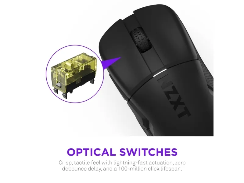 Optical Switches Minimize misclicks and get lightning-fast 0.2 ms response times plus a 100-million click lifespan.