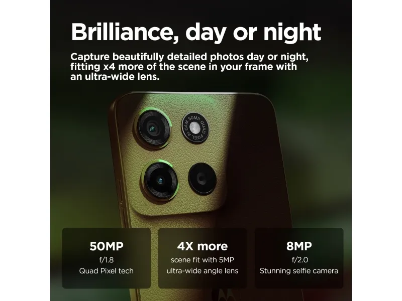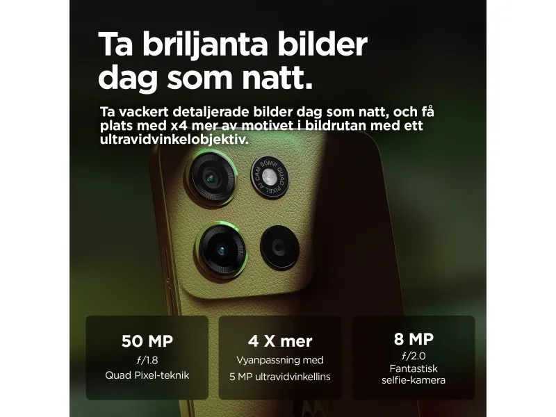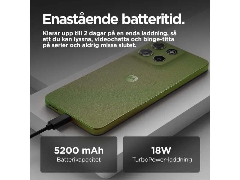 Motorola Moto G15 kombinerer imponerende funksjoner og brukervennlig teknologi i en elegant innpakning. Med en 6,72-tommers Full HD+ LCD-skjerm kan du nyte levende bilder forbedret med HDR10 og Dolby Atmos-lydteknologi for en oppslukende audiovisuell opplevelse. Det kraftige 5200 mAh-batteriet med TurboPower-teknologi sørger for forlenget bruk, slik at brukerne kan holde seg tilkoblet hele dagen. Dual-SIM-funksjonen gir allsidige tilkoblingsmuligheter, noe som gjør den ideell for både privat og profesjonell bruk. Kameraet er utstyrt med 50 megapiksler på baksiden med AI Portrait-modus og et ultravidvinkelobjektiv på 5 megapiksler, slik at brukerne kan ta fantastiske bilder under ulike forhold. Ytterligere funksjoner som ansiktsgjenkjenning og fingeravtrykksleser sørger for sikker tilgang, mens den sprutsikre designen gir enheten et ekstra lag med beskyttelse. Motorola Moto G15 gir pålitelig ytelse, enten du strømmer videoer eller multitasker med ulike apper, drevet av den 8-kjerners MediaTek Helio G81 Extreme-prosessoren.