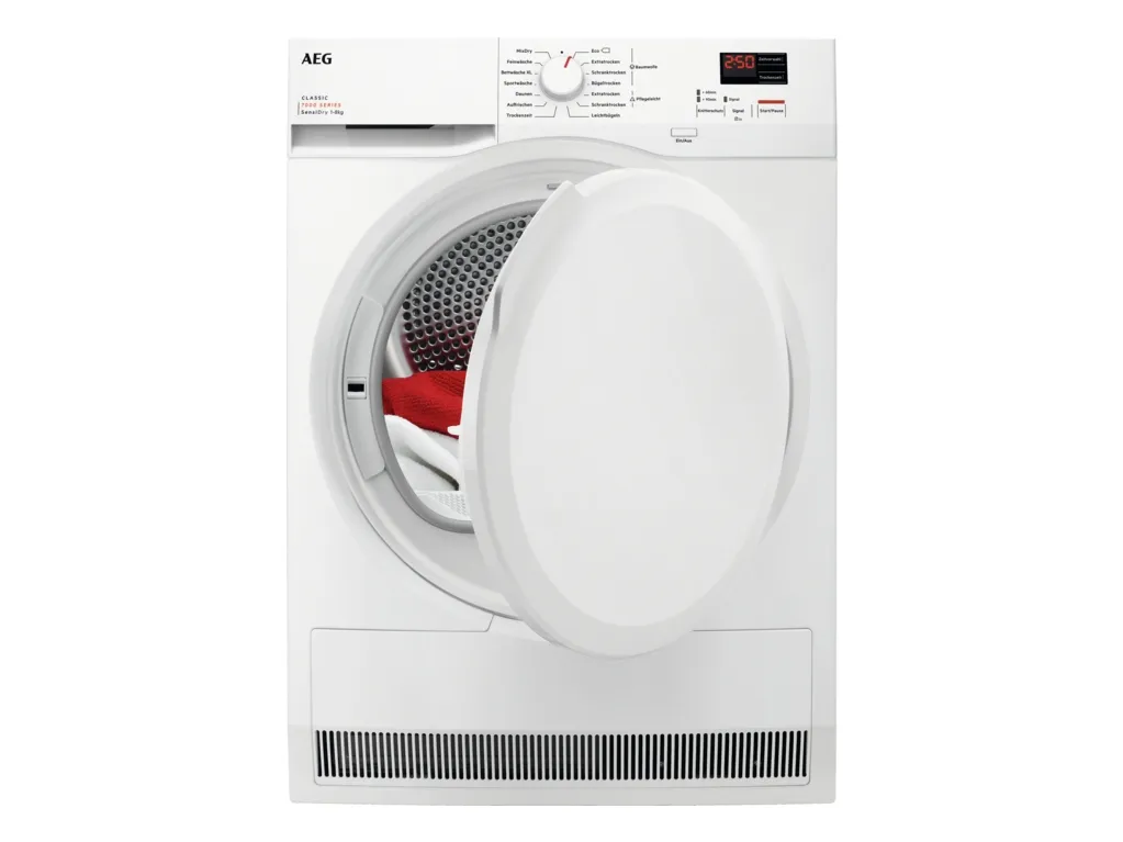 AEG Series 7000 TR7C40588, Frittstående, Frontmatet, Varme pumpe, Hvit, Knapper, Riktig/Høyre