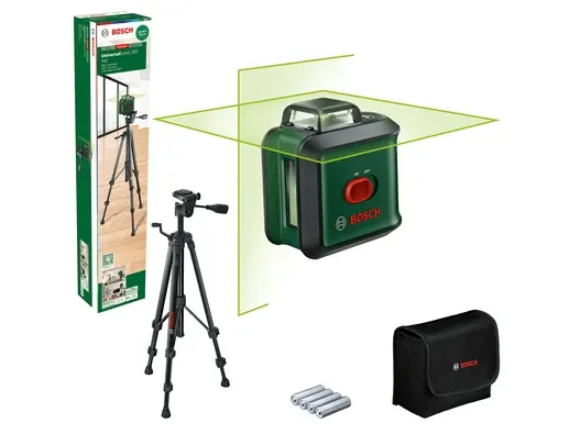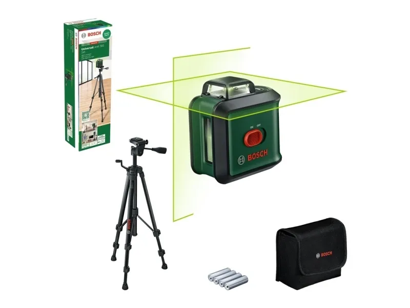 Working field- 0 - 24m. Mandatory warranty- 24 mo. Brand- Bosch Green. Article- 0603663E06. Measurement error, mm/m- 0 - 0.4. Contents- 1.5m aluminum tripod stand, Protective bag, 4 x 1.5V LR6 (AA) batteries. Batteries- AA. Number of batteries- 4.