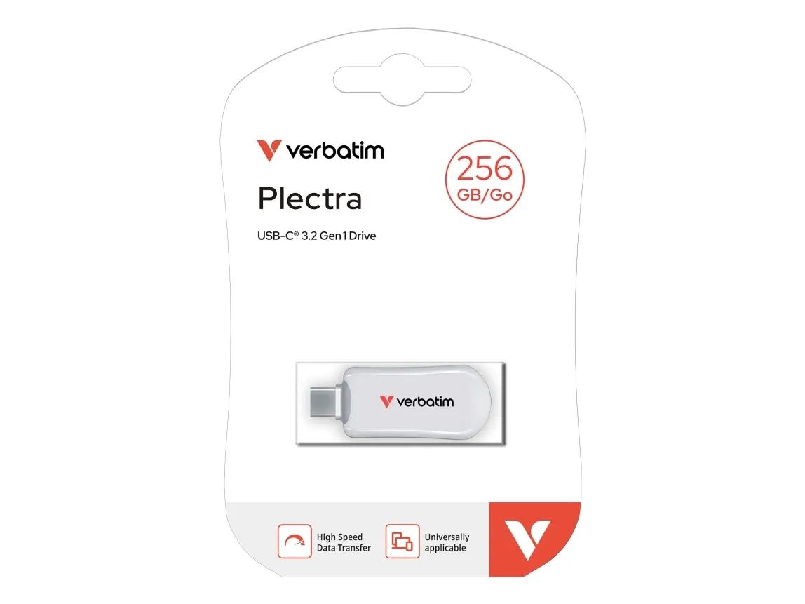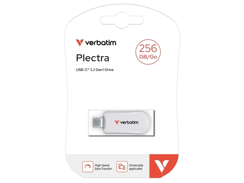 The Verbatim Plectra USB flash drive offers a reliable storage solution with a generous capacity of 256 GB, ensuring ample space for your important files, documents, and multimedia. With a transfer rate of up to 100 Mbps enabled by the USB 3.2 Gen 1 and USB-C interfaces, you can count on quick and efficient data transfers. This flash drive is compatible with a broad range of devices, making it a versatile choice for users who need on-the-go data storage.