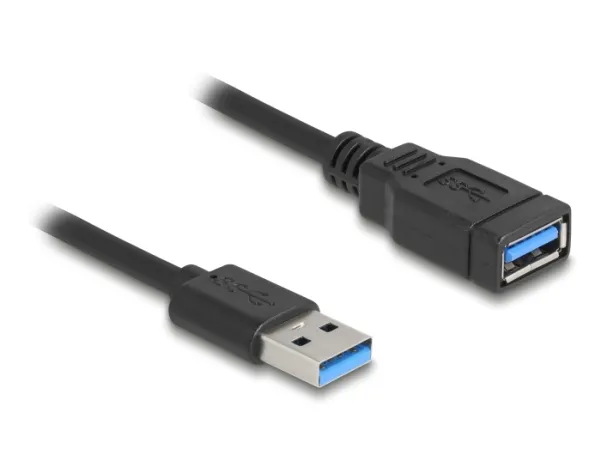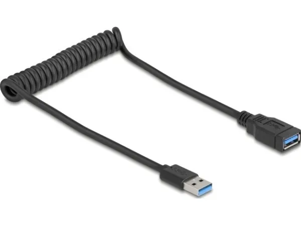 Coiled Cable The coiled cable enables a flexible connection, is easy to store and unlike conventional cables, takes up less space. It also has a high restoring force and can be extended to three times its original length.DeLOCK 90367. Cable length: 0.6 m. Connector 1: USB A, Connector 2: USB A, Maximum data transfer rate: 5 Gbit/s, Product colour: Black