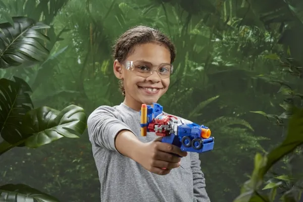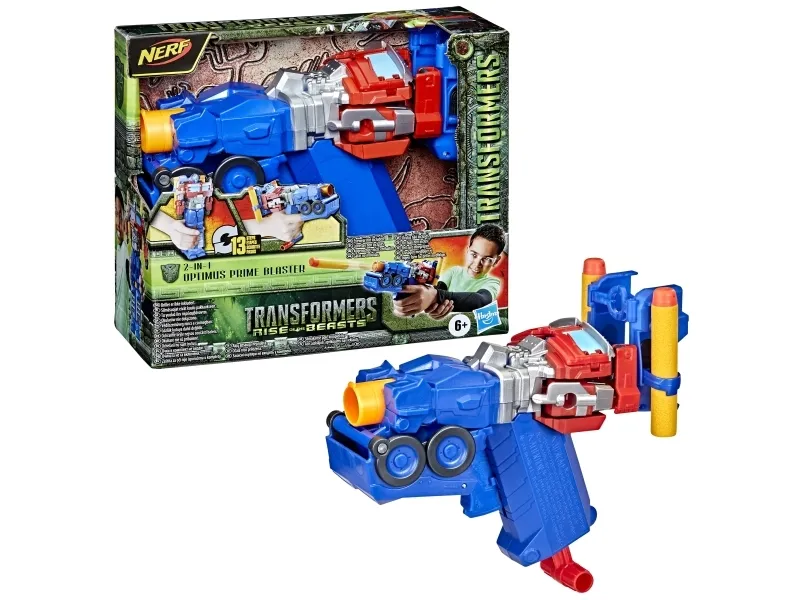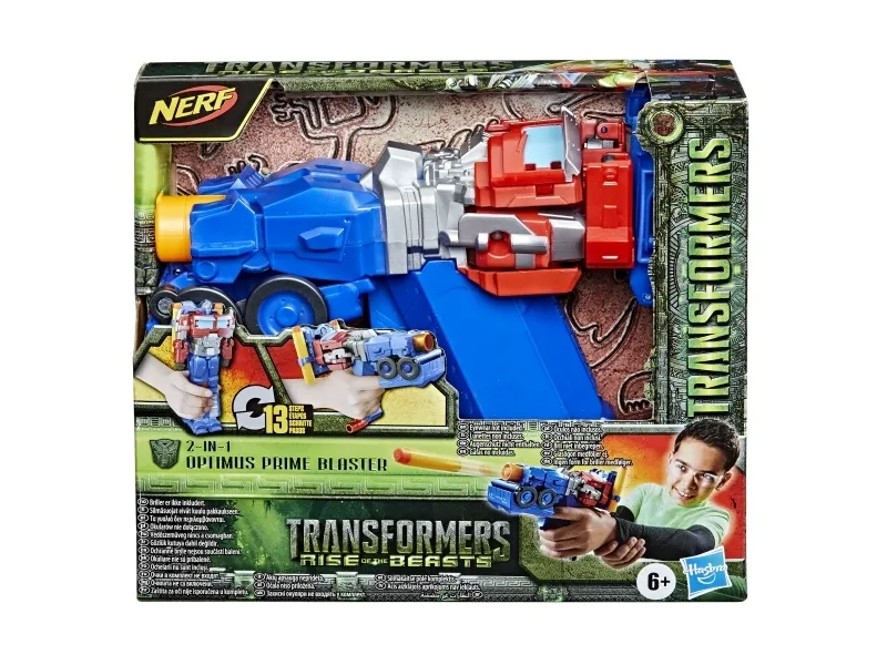 Transformers Rise of the Beasts Movie 2 in 1 Optimus Prime Blaster, 6 år, Plast, Blå, Rød, Sølv, Gult
