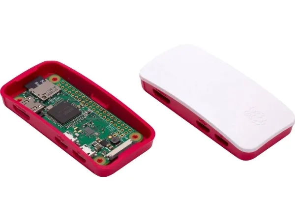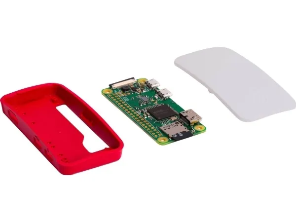 Original Raspberry Zero hus rød/hvid Raspberry Pi Zero W-kabinettet er udviklet med stor kraft fra Raspberry Pi Foundation og tilbyder en lang række anvendelsesmuligheder: Med kameradækslet og det medfølgende korte kamera-adapterkabel kan kabinettet hurtigt og nemt samles til et WLAN-kamera med et Raspberry Pi kameramodul (sælges separat) - med GPIO-låget kan der nemt udføres et kabel / pin header, til interfacing med elektronik - med det normale låg virker Pi Zero W ganske enkelt godt i en elegant form og er godt beskyttet