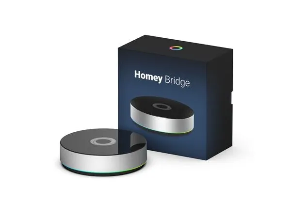 - Homey Bridge will be found automatically.Athom Homey bridge. Product colour: Black, Silver, Mobile operating systems supported: Android, iOS. Virtual assistant: Amazon Alexa & Google Assistant. Connectivity technology: Wireless. Height: 80 mm, Bridge weight: 546 g. Package width: 150 mm, Package depth: 150 mm, Package height: 80 mm