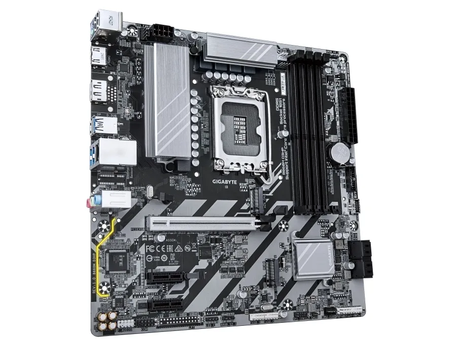 Elevate your computing experience with GIGABYTE's renowned motherboard series: AORUS, AERO, and GIGABYTE. Featuring innovative designs and advanced features, these boards offer exceptional performance and reliability. Whether you're a gamer, content creator, or professional, our series cater to your needs, ensuring uncompromising quality and cutting-edgeGIGABYTE B860M D3HP Motherboard - Intel Core Ultra Series CPUs, 4+1+2+1 Phases VRM, up to 9066MHz DDR5, 2xPCIe 4.0 M.2, GbE LAN, USB 3.2 Gen 1. Processor manufacturer: Intel, Processor socket: LGA 1851 (Socket V1), Compatible processor series: Intel® Core™ Ultra (Series 1), Intel Core Ultra (Series 2). Supported memory types: DDR5-SDRAM, Maximum internal memory: 256 GB, Memory slots type: DIMM. Supported storage drive interfaces: M.2, SATA III, Supported storage drive types: HDD & SSD, RAID levels: 0, 1, 5, 10. Maximum resolution: 4096 x 2160 pixels. Ethernet interface type: Gigabit Ethernet, LAN controller: Realtek RTL8111H
