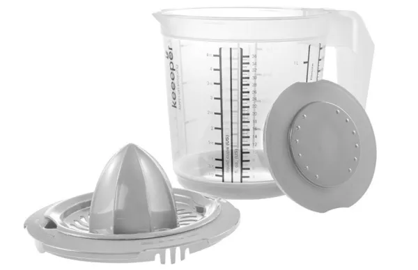 Brand- Keeeper. Model- Matteo. Article- 3004513015500. Volume- 1 l. Colour- Transparent, Grey. Material- Plastic. Contents- Measuring container with lid 1 L + juicer nozzle. With lid- Yes. Non-slip base- Yes. Mandatory warranty- 24 mo. Warranty for legal entities- 12 mo.