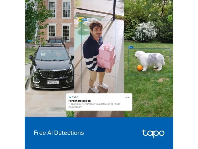 Tapo 4K cameras deliver sharper, more detailed live views, making them perfect for capturing finer details like license plates, lush lawns, and moving pets.