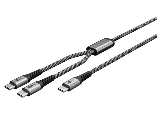 Perfekt til rejser og meget mere praktisk end to individuelle kabler: Forgreningen betyder, at der ikke er nogen kabelknuder, og USB-C™-kablet er nemt at transportere