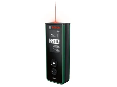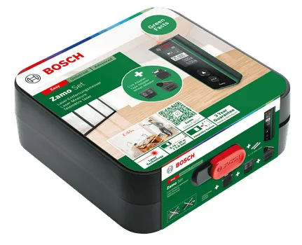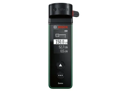 With the Zamo laser measure, it's easy to determine room lengths or heights for furniture arrangement or work out flooring or paint requirements when renovating. Positioned, pointed, and with the press of a button, the Zamo precisely measures distances up to 25 meters. It also calculates square meters, making it highly practical for estimating wallpaper, flooring, or other material needs. For more convenience, this easy-to-use tool has additional measuring functionality thanks to three convenient attachments: A line for leveling pictures or other objects, a wheel for measuring curves and uneven surfaces, and a 1.5-meter tape for measuring freestanding objects and circumferences. There's no need to write down every measurement when using Zamo as this device smartly saves the 10 most recent values. This handy laser measure is always up to date and ready for use: An integrated USB-C interface ensures effortless recharging and software updates.