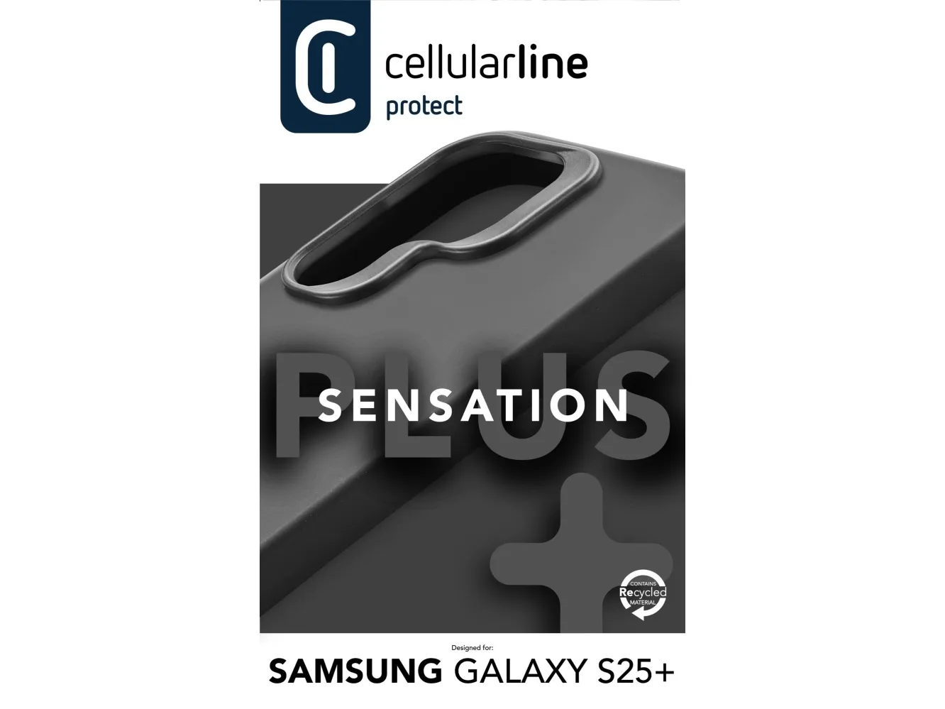 SENSATION PLUS is the silicone case that fits perfectly on the smartphone. The rigid structure with soft-touch finish safeguards the phone without creating the undesired grip effect during daily use. It fully protects edges, buttons and connectors and, thanks to the raised edges, protects the camera and display area.Cellularline Sensation+ - Galaxy S25+ Soft-touch silicone case. Case type: Cover, Brand compatibility: Samsung, Compatibility: Galaxy S25+, Maximum screen size: 17.3 cm (6.82"), Surface coloration: Monochromatic, Product colour: Black