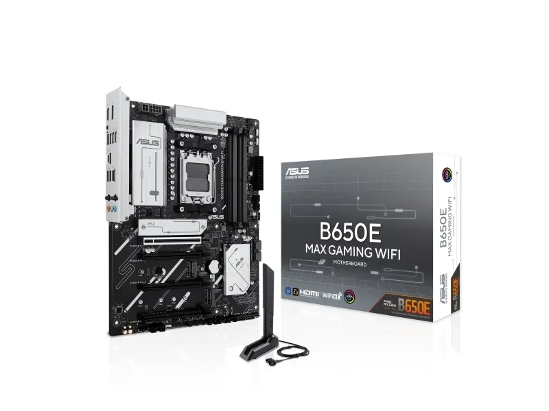 ASUS B650E MAX GAMING WIFI - Hovedkort - ATX - Socket AM5 - AMD B650 Chipset - USB-C 3.2 Gen2, USB 3.2 Gen 2, USB 3.2 Gen 1 - 2.5 Gigabit LAN, Wi-Fi 6E, Bluetooth - innbygd grafikk (CPU kreves) - High Definition Audio (7,1-kanals)