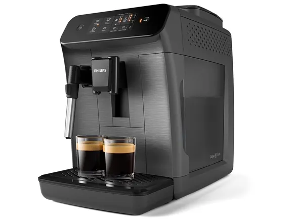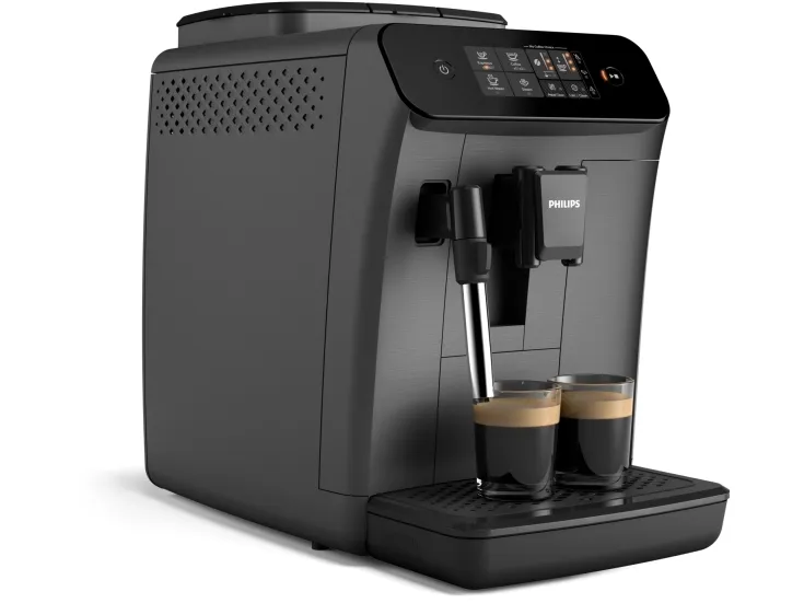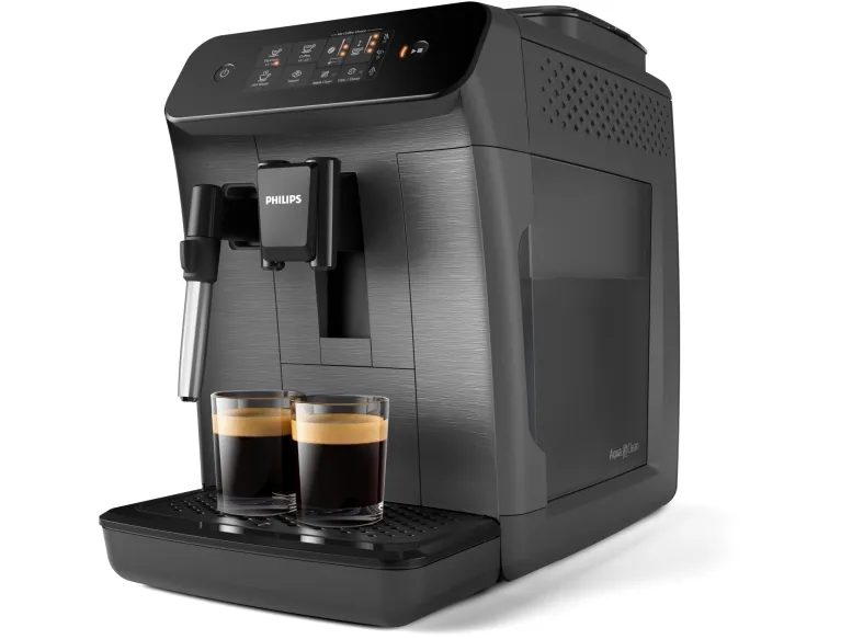 The Philips Series 800 EP0824 is an automatic coffee machine designed to elevate the coffee experience. It brews exquisite espresso with a professional-grade 15 bar pressure, ensuring rich flavor extraction. With an integrated coffee grinder and a 1.8-liter water tank, it accommodates both ground coffee and coffee beans, providing flexibility for coffee lovers. Enjoy customizable beverages with variable coffee strength and length settings, complemented by a cappuccinatore for a creamy finish. Cleaning is effortless, with several components being dishwasher safe, including the drip tray, coffee grounds container, and milk frother. The incorporation of the AquaClean water filter system enhances the quality of each brew while prolonging the machine's lifespan. The intuitive digital display and touch-sensitive controls simplify operation, allowing users to easily program their preferences and enjoy personalized beverages at the touch of a button.