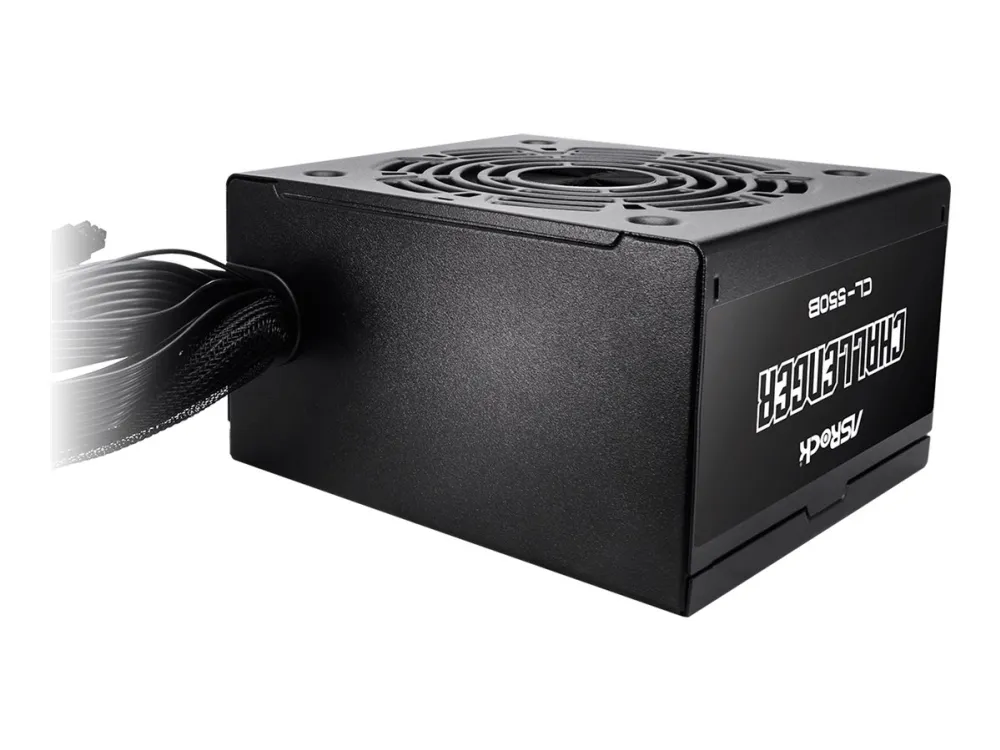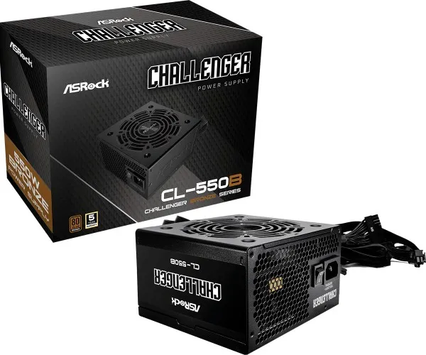 Safety First with ASRock Full suite of protections to keep all components safe during normal to extreme power levels. ASRock offers an outstanding 5 –Year warranty, guaranteeing long term reliable and peace of mind operation.Asrock CL-550B Challenger. Total power: 550 W. Motherboard power connector: 20+4 pin ATX, Motherboard power cable length: 60 cm. Purpose: PC, Power supply unit (PSU) form factor: ATX, 80 PLUS certification: 80 PLUS Bronze. Product colour: Black, Cooling type: Active, Fan diameter: 12 cm. Cables included: CPU, PATA, SATA