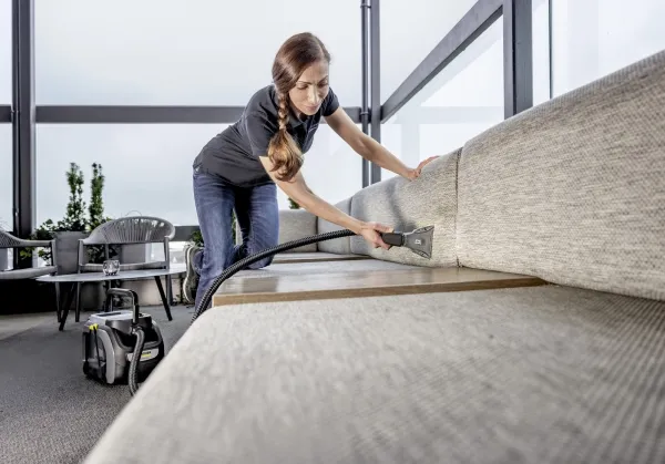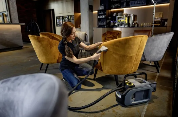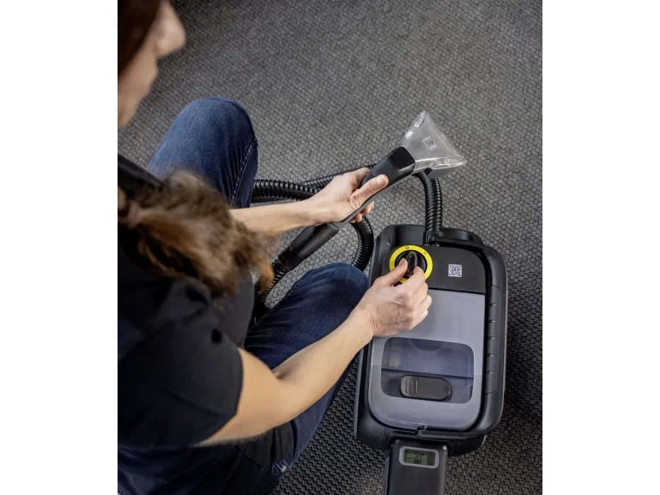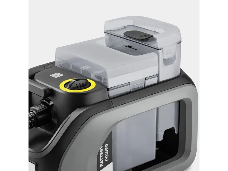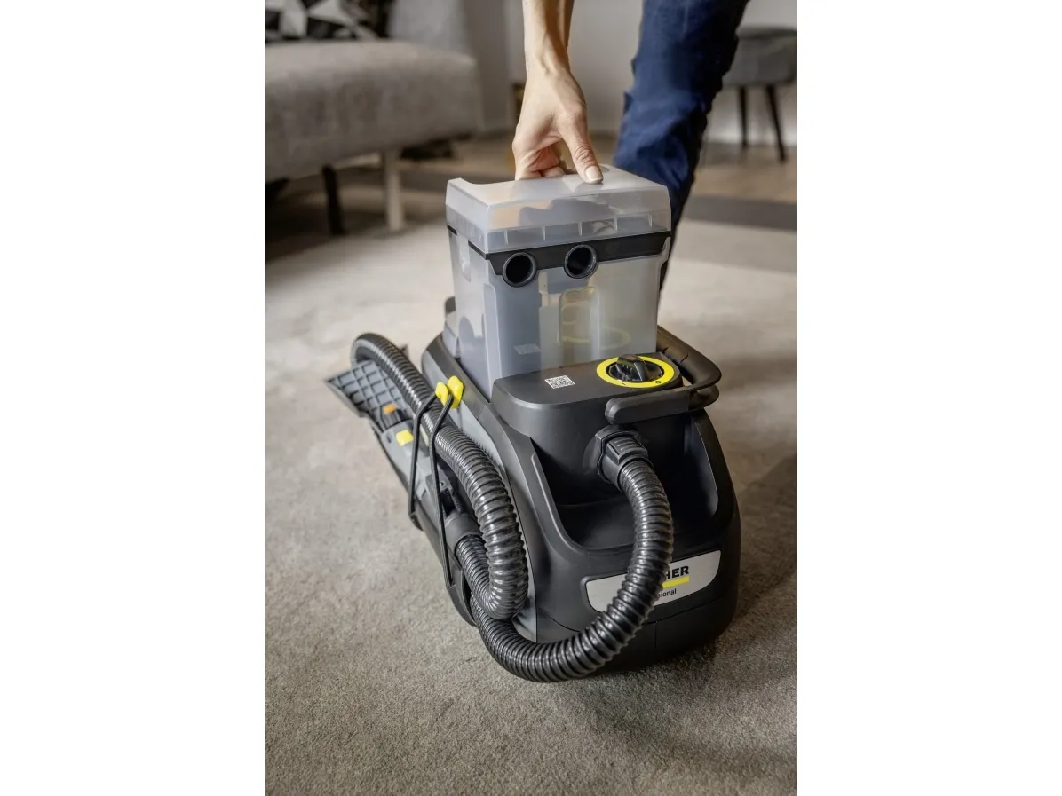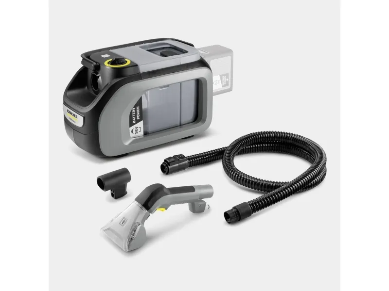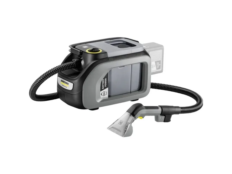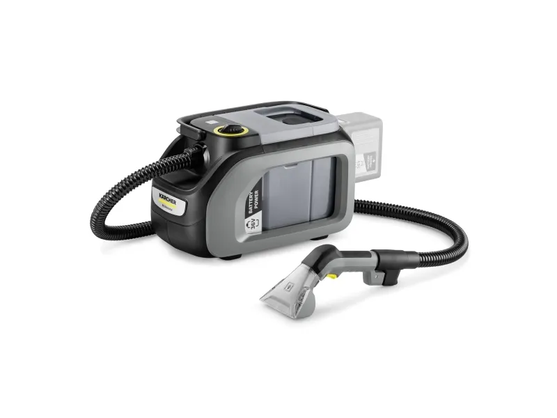 Kärcher batteri-vaskesuger Puzzi 2/1 BP Beholdermateriale: Plast Ergonomisk bærehåndtag Transportsikring af slangen Integreret opbevaring af tilbehør Polsterdyse Rengøringsmiddel RM 764 N Robust, langtidsholdbar, effektiv og trådløst fleksibel: Vores batteri-vaskesuger Puzzi 2/1 BP. Med dette mobile batteri-sprøjteapperat, der samtidig fungerer som vaskesuger, spotter og pletter, kan du nemt fjerne friske eller tørre pletter på tekstiler som f.eks. stolestuer, sofa, bilsæder og meget mere. Puzzi 2/1 BP fjerner med fremragende tilbagesugningseffekt alle pletter i en håndevending og sørger dermed for korte tørretider. Takket være den kompakte konstruktion, den lave vægt og det ergonomiske bærehåndtag kan apparatet transporteres i én hånd uden problemer. For at opnå de bedste resultater ved fjernelse af pletter sprøjtes rengøringsopløsningen dybt ind i tekstilfibrene under tryk og suges sammen med det opløste snavs. Som standard medfølger: Polstermundstykke, sprøjte-/sugeslange, separat beholder til frisk- og spildevand og integreret tilbehørsopbevaring. Vær ved bestilling opmærksom på, at det kraftfulde 36 V Kärcher Battery Power+ -batteri samt den tilhørende lynlader i denne enhedsversion skal bestilles separat.