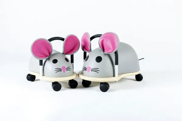 Den store model, af den prisvindende originale håndlavede Wheely Bug Mus, er en fantastisk skubber/gåbil. Det unikke ved Wheely Bug fremfor lignende legetøj er, at hjulene kan dreje rundt i 360 grader, så der altid kan være fuld fart på legen med den store mus. Dette udfordrer blandt andet barnets grovmotorik, afstandsbedømmelse og koordination. Wheely Bug'en er ergonomisk rundet, så den er behagelig for barnet at sidde på. Desuden har Wheely Bug et lavt tyngdepunkt, hvilket gør det svært for barnet at vælte med den. Udført i lærketræ med håndtag i rustfrit aluminium, nylonhjul og miljøvenligt Polyuretan. Mål: L: 46 x B: 23 cm. Siddehøjden er 26 cm. Anbefalet max vægt: 25 kg. Beregnet til børn fra 3 til ca. 5 år.