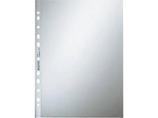 Glass clear 0.08 mm recyclable PP foil, copysafe\n\nOpening at top for easy removal of papers without releasing binder mechanism\n\n11 holes for universal use\n\nFor A4 format