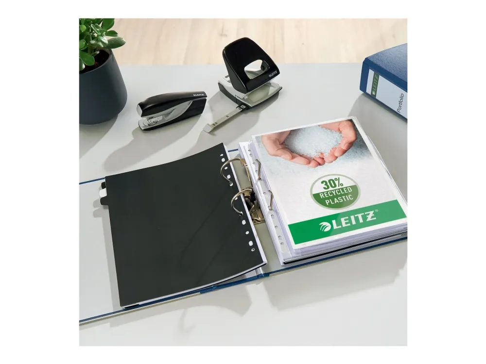 Fuktbestandig, smussbestandig, rillet omslag, forsterkede kanter, tommelhull med metallfôring, bleket uten klor, 180° hevarmbuemekanisme