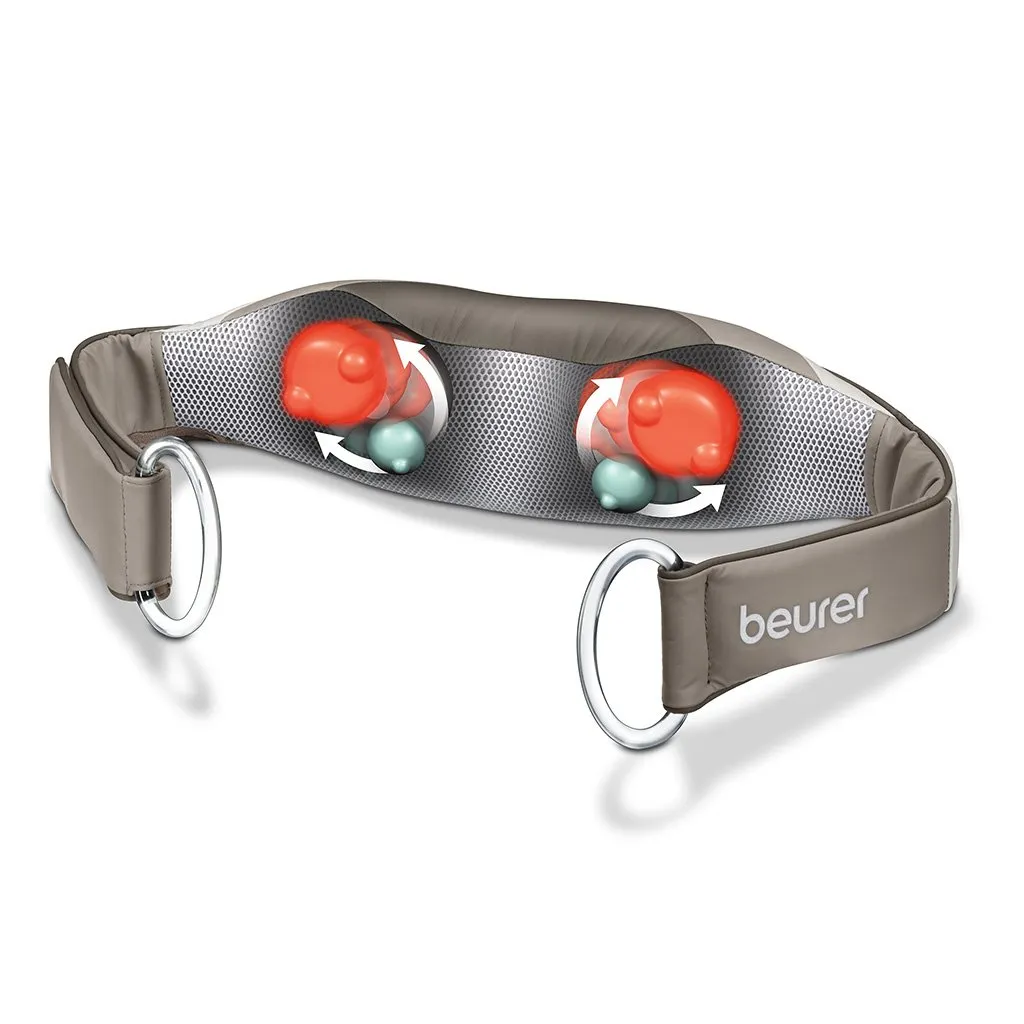 MG 148 Shiatsu-massagebælte til afslapning og massage derhjemme. Beroligende shiatsu-massage til ryg, nakke og skuldre med 4 roterende massagehoveder. Rotation med og mod uret for effektiv æltende massage. Lys- og varmefunktion for ekstra komfort og velvære. Alsidig anvendelse til spotmassage, håndfri brug med fastgørelse til kroppen eller manuel styring via praktiske håndtag. Imiteret læderoverflade (PU) for komfort og holdbarhed. Inkl. bælteudvidelse og nem betjening via kontrolelement på produktet. 3 års garanti.