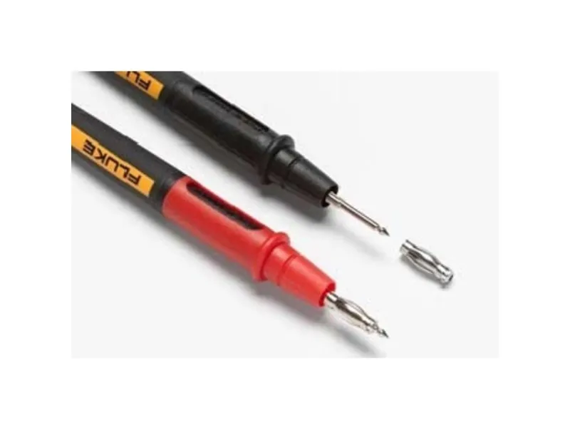 Særlig type silikone-måleledningssæt: For at leve op til kravene i EN 61010-031-sikkerhedstrinnene kan overspændingskategorier mellem CAT II 1000 V og CAT III 1000 V/CAT IV 600 V indstilles ved hjælp af den drejelige målespidsjustering. Passer til de fleste Fluke måleledningssatser og måleledninger med udskiftelige målespidser. Udførelse med 4 mm fjederstik.