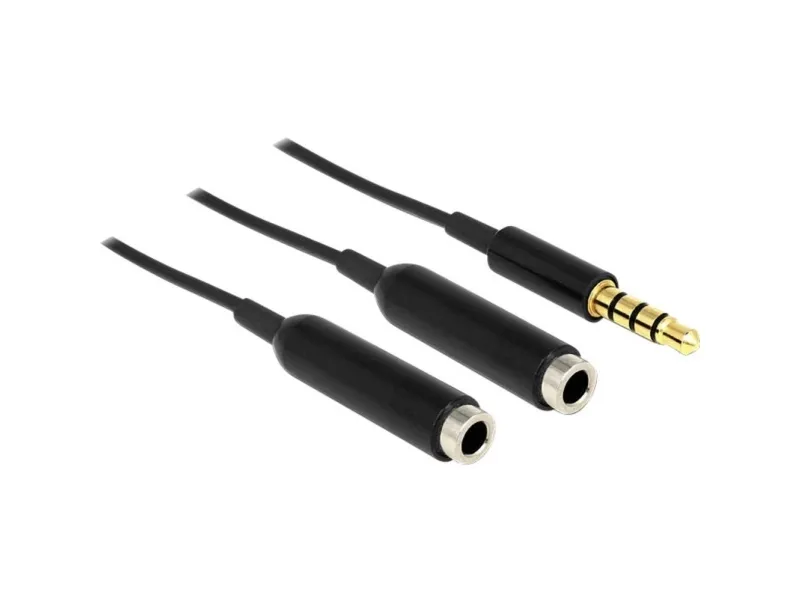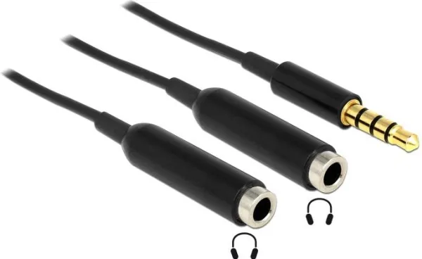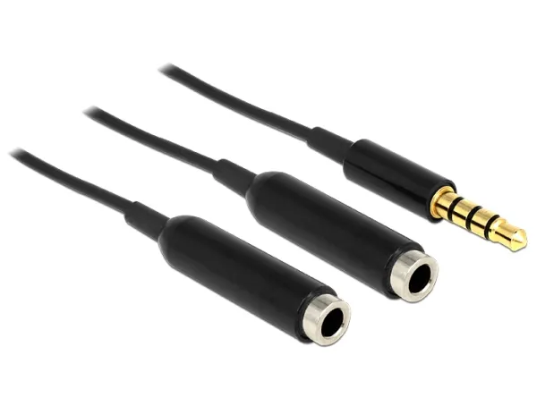 This audio stereo jack cable by Delock can be connected to a free stereo jack female port of your iPhone, iPod, iPad and so on in order to get two stereo jack female interfaces. Thus two persons can easily listen to music or similar, through their headphones.