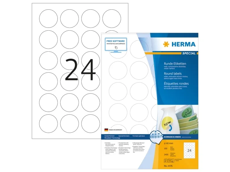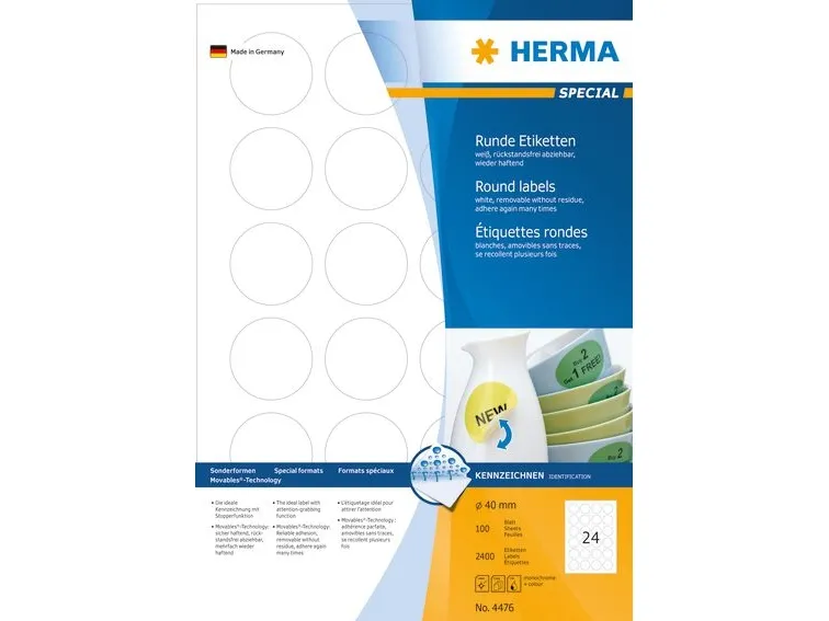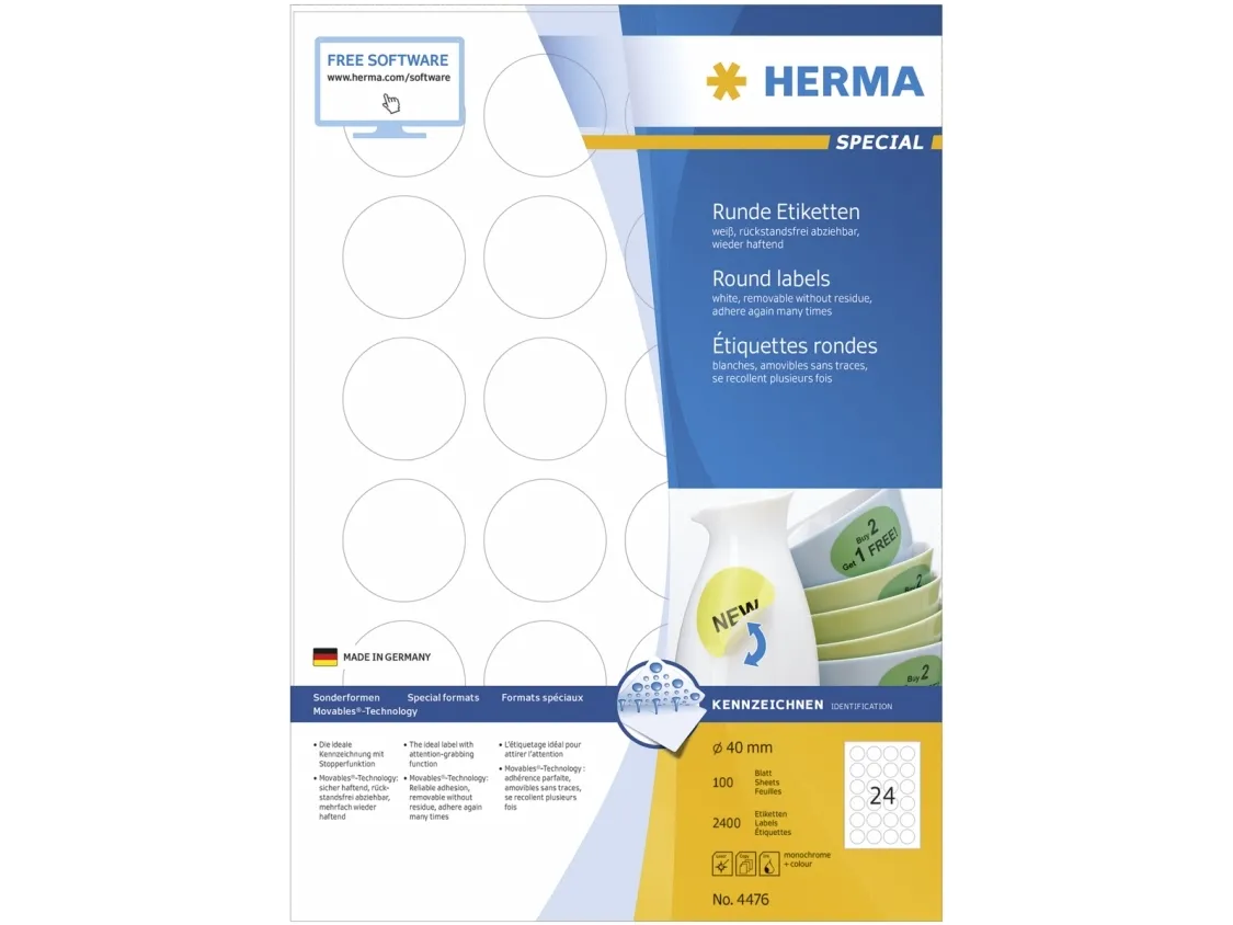 HERMA Special - merkelapper - matt - 2400 etikett(er) - 40 mm rund