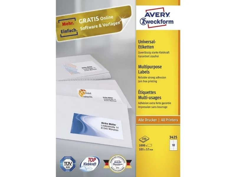Work in an office with different types of printers and copiers? You can now buy one type of label to suite all if you choose these multi-purpose labels. They even work with photocopiers. So it's just one solution for a number of labeling needs and you're always guaranteed to have the right label for the job in-hand. It takes no time to design and print your labels using the free Avery templates and software.
