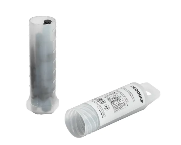 Made from chrome-vanadium steel, 35 HRC. In plastic case.