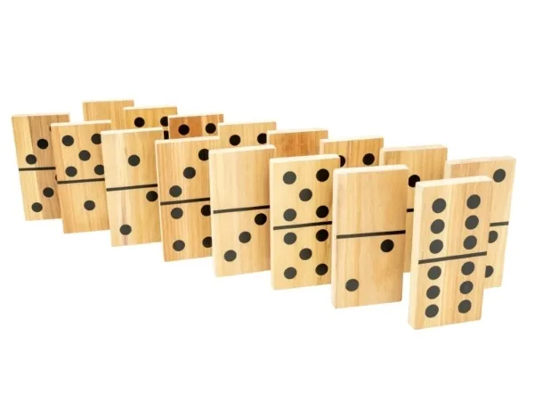 Kæmpe Domino i Træ – Klassisk Spil i Stor Skala Kæmpe domino i træ er en nyfortolkning af det klassiske spil, hvor underholdning, kvalitet og fællesskab går hånd i hånd. Med sine ekstra store brikker fremstillet i FSC®-certificeret træ kombinerer dette spil traditionel leg med moderne bæredygtighed og æstetik. Det er en sjov og anderledes måde at spille domino på – ideel til både børn og voksne, og velegnet til brug både inde og ude. Et Spil for Hele Familien Kæmpe domino er nemt at lære og sjovt at mestre. Spillet består af 28 store træbrikker, som placeres ved at matche prikkerne på tværs af brikkerne. Den større størrelse gør det nemt for børn at håndtere, samtidig med at det giver spillet et visuelt udtryk, der fanger opmærksomheden hos både små og store. Uanset om det spilles på stuegulvet, i haven, i sommerhuset eller på skolen, er kæmpe domino en fantastisk måde at samle familie, venner eller kollegaer om et spil, der både udfordrer og underholder. Høj Kvalitet og Bæredygtigt Design Brikkerne er fremstillet i massivt træ og bærer FSC®-certificeringen, hvilket sikrer, at træet kommer fra ansvarligt skovbrug. Det naturlige materiale giver spillet en varm og æstetisk fremtoning, og den robuste kvalitet sikrer, at det kan holde til mange timers leg – både indendørs og udendørs. Fordele ved Kæmpe Domino i Træ Pædagogisk og udviklende: Stimulerer logisk tænkning, talgenkendelse og strategisk planlægning. Socialt og inkluderende: Perfekt til alle aldersgrupper – fra 3 år og op – og ideelt til familiehygge eller gruppearbejde. Bæredygtigt valg: Fremstillet i FSC®-certificeret træ for en miljøvenlig og ansvarlig legeløsning. Alsidigt brug: Velegnet til både indendørs og udendørs brug – i haven, børnehaven, på legepladsen eller til events. Kæmpe domino i træ forener det bedste fra den klassiske spilleverden med moderne design og bæredygtige materialer. Det er en sjov og engagerende aktivitet, der skaber plads til læring, leg og samvær. Uanset om du er på udkig efter et pædagogisk redskab, et familiespil eller en dekorativ tilføjelse til legeområdet, er dette spil et sikkert valg – i både format og kvalitet. Spilleregler for Kæmpe Domino (samme som klassisk domino) Kæmpe domino spilles efter samme grundprincipper som almindelig domino – forskellen er blot, at brikkerne er større og ofte bruges til leg og spil i haven, på skolen eller til familiearrangementer. Her er de grundlæggende regler: Formål med spillet At være den første spiller, der slipper af med alle sine domino-brikker ved at placere dem på bordet (eller jorden), så tallene matcher. Indhold: 28 domino-brikker med to felter på hver brik (hver med mellem 0 og 6 prikker/dots). Spillet spilles bedst med 2–4 spillere Sådan spiller man Udlevering af brikker Ved 2 spillere: 7 brikker til hver. Ved 3–4 spillere: 5 eller 6 brikker til hver. Resten lægges med bagsiden op som en "bunke" (kaldet boneyard). Start af spillet Den spiller, der har den højeste dobbeltbrik (f.eks. [6|6]), starter spillet ved at lægge den midt i spilleområdet. Hvis ingen har en dobbelt, må en tilfældig spiller starte. Turen går videre Spillerne skiftes til at lægge én brik ad gangen, så det ene felt på brikken matcher et af de åbne felter i enderne af domino-rækken. Hvis du ikke kan lægge en brik, trækker du en fra bunken. Kan du bruge den, må du spille den med det samme – ellers går turen videre. Sådan lægges brikkerne Brikkerne lægges ende mod ende, hvor tallene matcher. Dobbeltbrikker lægges typisk på tværs for at markere, at begge ender er åbne. Sådan vinder man Den første spiller, der slipper af med alle sine brikker, vinder runden. Hvis ingen kan lægge flere brikker, og der ikke er flere at trække, vinder den spiller, der har færrest prikker tilbage på sine brikker. Tip til spil med børn Brug spillet som en leg uden konkurrence – bare ved at matche prikkerne. Lad børnene tælle prikker, finde farver eller stable brikkerne som motorisk aktivitet. Alder: Fra 3 år Medfølger: 28 kæmpe dominobrikker Størrelse: 15 x 7,5 x 1,5 cm