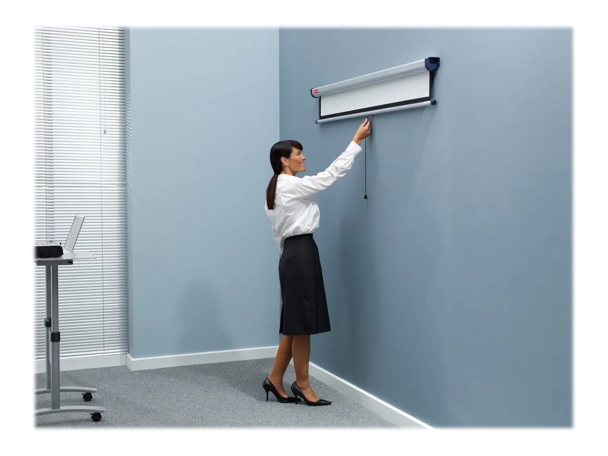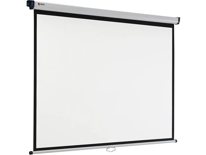 The brilliant matt white surface provides a sharp, detailed image that can be easily viewed by everyone in the audience. The screen can be easily retracted into its housing to protect from damage or to hide away when not in use. With optional extension brackets the screen can be mounted over a whiteboard or tilted towards the audience.\n\n- Can be mounted to either a wall or ceiling\n- 1 year warranty for peace of mind\n- 4:3 and 16:10 format\n- Smart black border for increased contrast and a professional image\n- Wide viewing angle (160°) for excellent all-round visibility\n- Ideal for use with digital projectors and overhead projectors