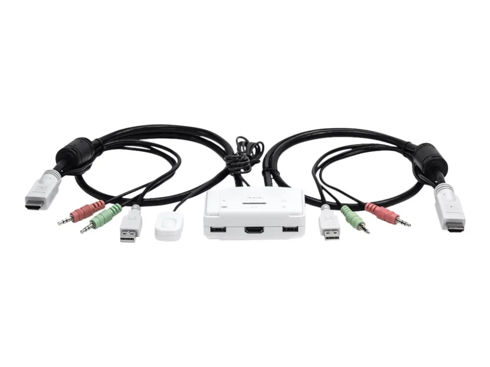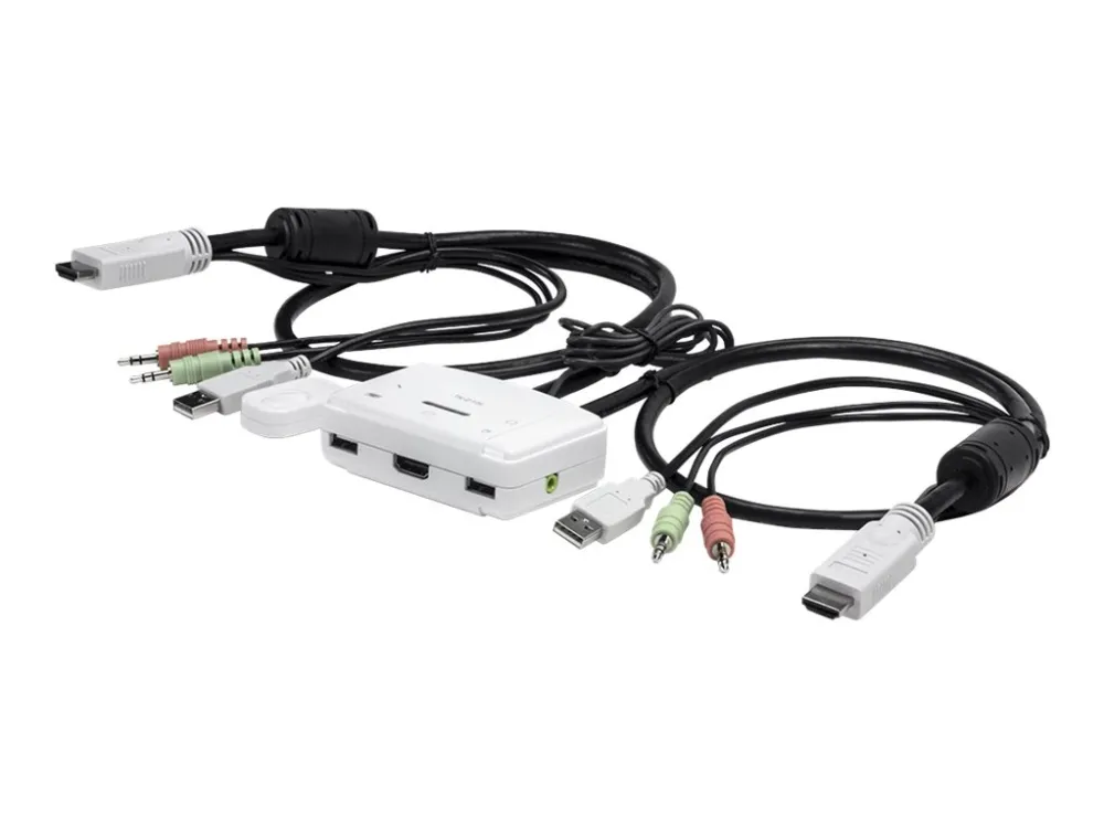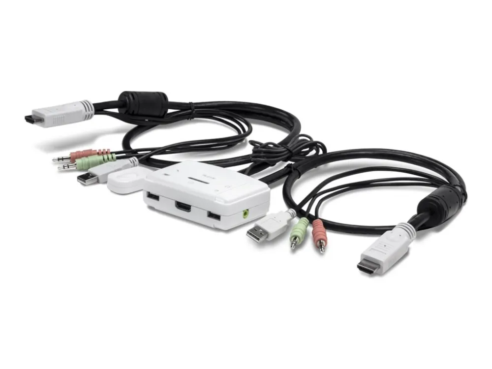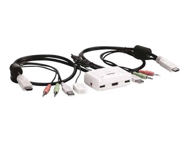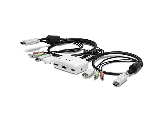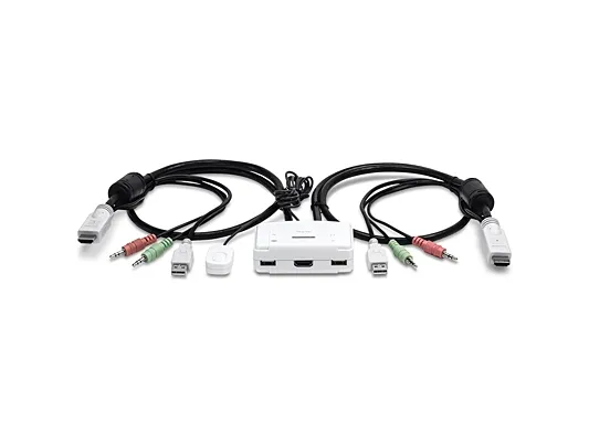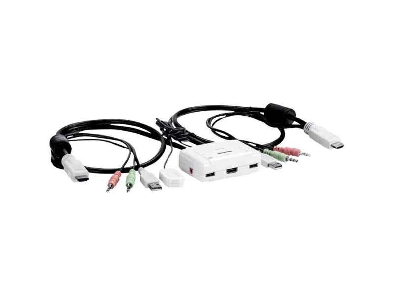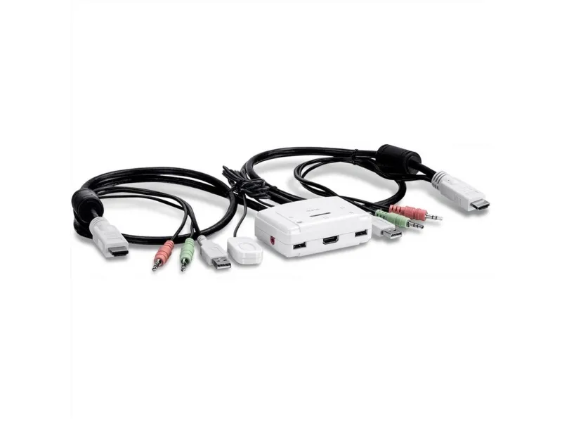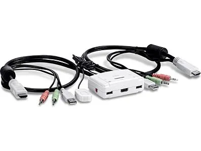 TRENDnet's 2-Port HDMI KVM Switch, model TK-215I, controls two computers (with an available HDMI port) with one set of console controls. No driver installation required, simply plug in the integrated cables to share two computers with a full HD 1080p display. The TK-215i supports HDMI and 3.5 mm analog audio and features an ergonomic computer toggle switch.