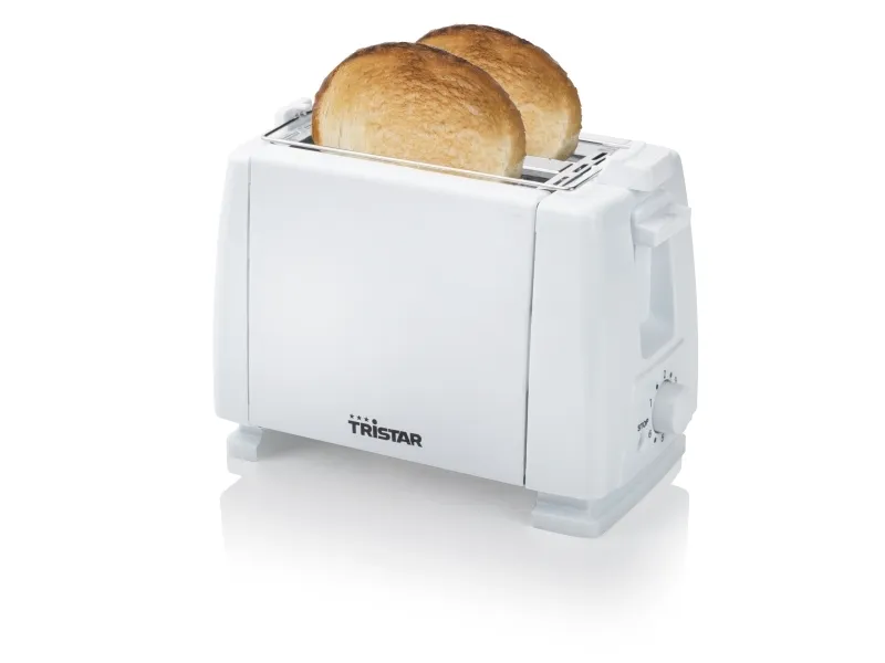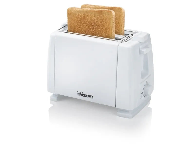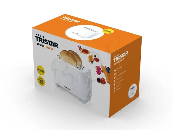 Tristar BR-1009 Toaster – 2 short slots – White The 650 W Tristar BR-1009 Toaster has 2 slots so you can easily toast 2 slices of bread. This simple toaster has six browning settings and a handy bun warming rack.