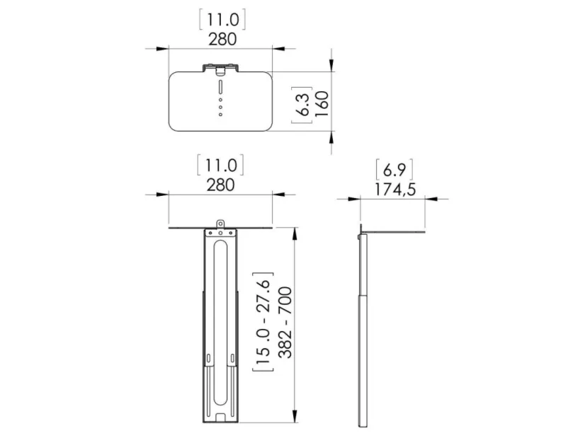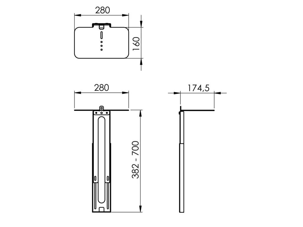 Væg Sort 700 mm Ja 38,2 cm 70 cm 382 - 700 mm 280 mm 174,5 mm 2,5 kg 196 mm 64 mm 401 mm 192 stk 2,5 g 70 g