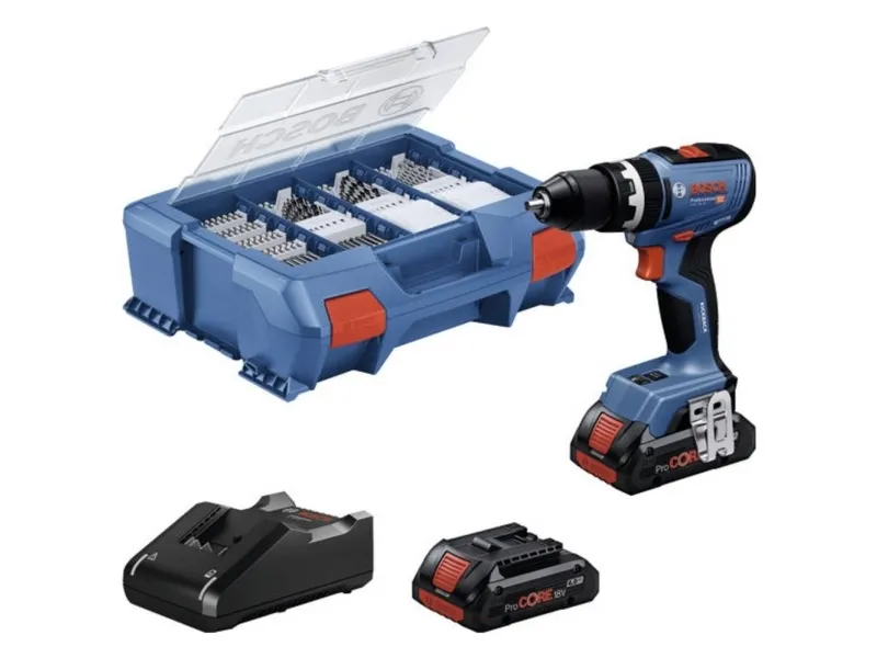 Batteridrevet slagslagboremaskine GSB 18 V-65, 2 x batteri GBA 18V 4.0Ah, L-Case pick & Click Batteridrevet slagboresgemaskine GSB 18V-65, hvis du leder efter en batteridrevet bore- /skruemaskine, der giver den nødvendige kraft Power til svære skrueanvendelser, så finder du ikke noget bedre end Bosch slagboremaskine GSB 18V-65 Professional. Den borer ubesværet takket være metal, træ eller plast takket være det forbedrede drejningsmoment på 31/65 Nm og en hastighed på 0-550/0-2100 min og har en ekstra slagfunktion til boring i murværk. Dette kompakte værktøj med en praktisk hovedlængde på kun 175 mm er snævre, vanskelige områder ikke noget problem. KickBack Control, der kan tilkobles, forhindrer en utilsigtet værktøjstilbageslag og sørger dermed for din sikkerhed. Desuden leverer det dobbelte arbejdslys endnu mere lysstyrke Leuchtkraft til belysning af arbejdspladsen. Om det er til møbler, møbel, elektriker, metalarbejder eller murere, Bosch Bosch GSB 18V-65 Professional er værktøjet til valg af svære skrueopgaver. Den egner sig til boring i træ op til 35 mm, skruning i træ op til 10 mm og boring i metal og murværk op til 13 mm. 2 x batteri GBA 18V 4.0Ah (1 600 A00 163). Hurtigoplader gal 18 V-40 Professional (2 607 226 251). L-case-pick & Click (1 600 A02 6W3)