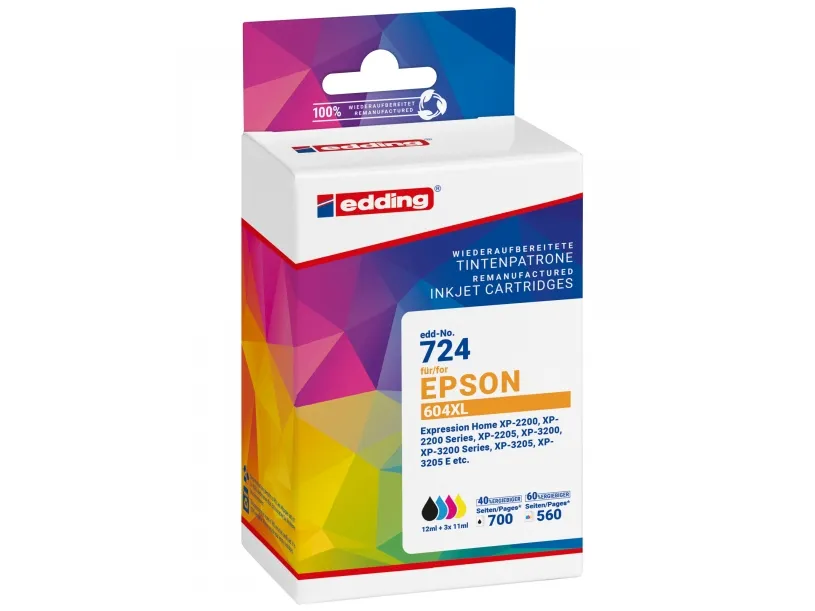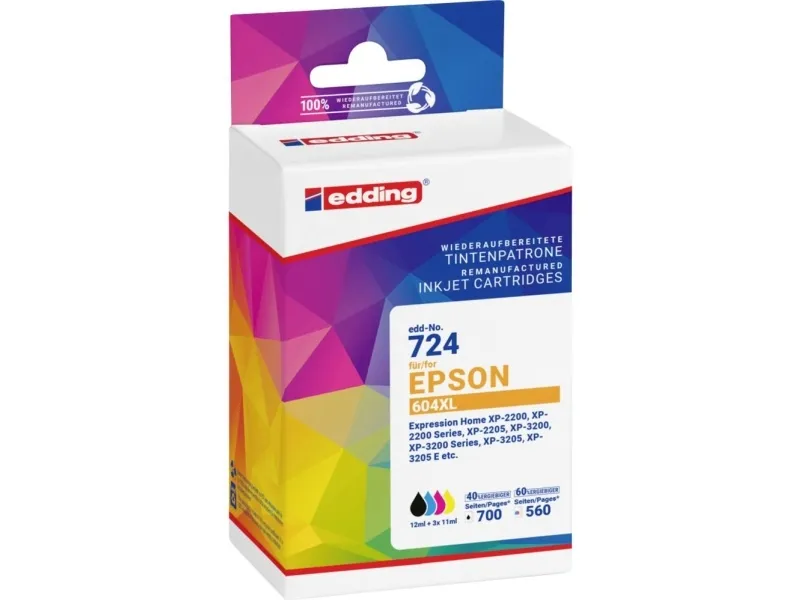 Edding blækpatron EDD-724 til Epson 604XL BKCMY MP4 Print med edding - prisvenligt og pålideligt