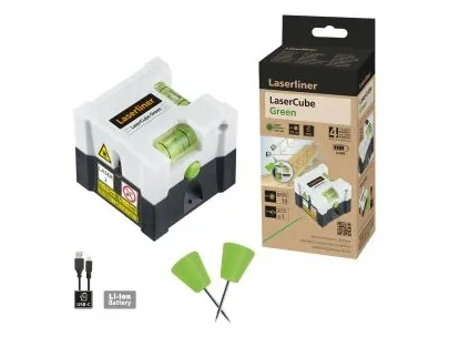 Ekstremt praktisk, grøn linjelaser til hurtige justeringsarbejder på gulvet og på vægge - brug af genbrugt materiale for bæredygtighed Denne praktiske linjelaser er ideal for hurtige justeringsarbejder på gulvet og på væggen. Via vertikal- og horisontal-libelle kan enheden nemt justeres og kan også anvendes som laser-vaterpas. Specialstifter er beregnet til sikker fastgørelse uden beskadigelse. Anvendelsen er komfortabel med den meget lyse, grønne laser og det kompakte kabinet, som for en stor del af genbrugt plast og giver et værdifuldt bidrag til bæredygtighed.
