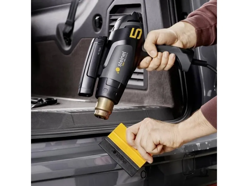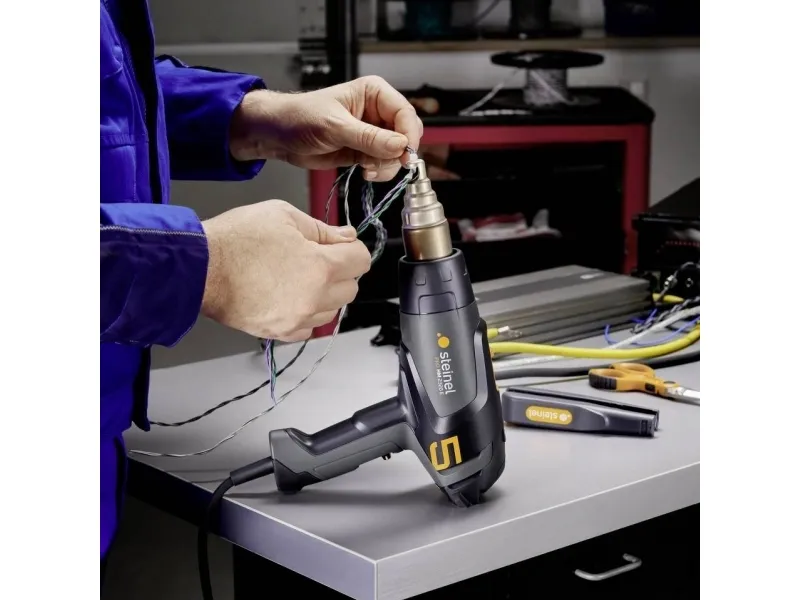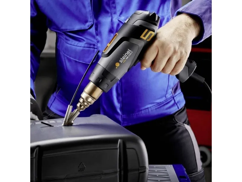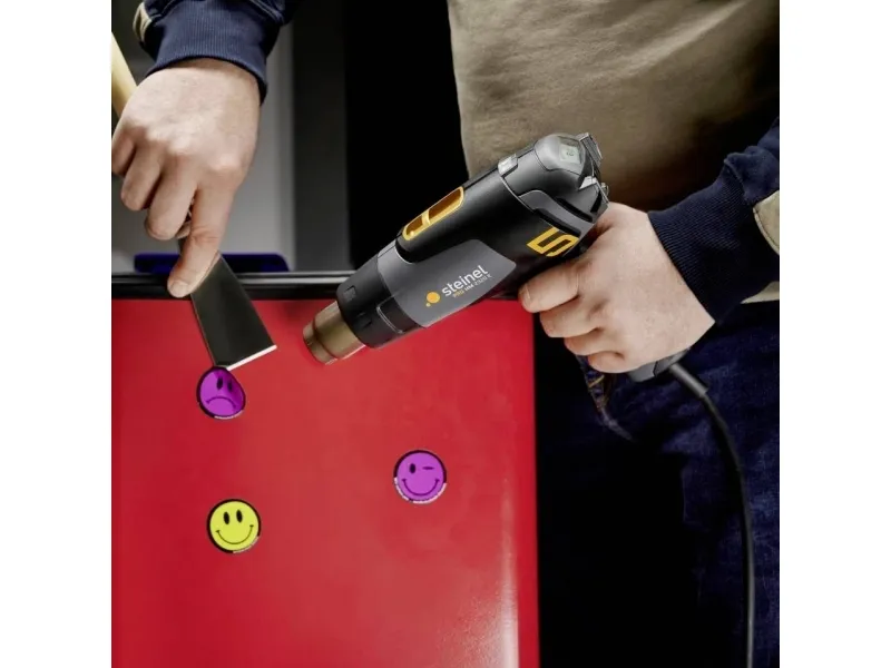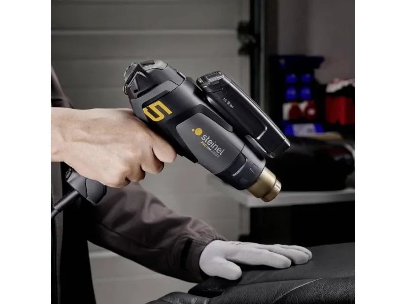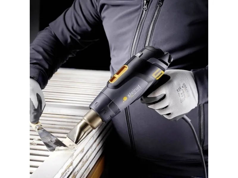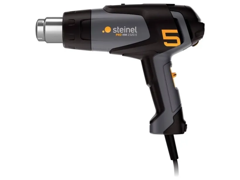 varmluftsblæser HM 2320 E sæt, 2300W varmluftspistol med ECO-tilstand LC-display LOC-funktion Visning af restvarme Sikring mod genstart Termosikring Termobeskyttelsesfrakobling Eksklusiv keramik-opvarmning 3 m netkabel for fleksibel håndtering Mulighed for ophæng Temperaturvisning med drejeknap med mærkede trin Børstemotor Energibesparende Digital Professionelt. Ny funktion til at spare på energien. Be Green ved værker med varmluft, da HM 2320 E har en timer-funktion, der automatisk tænder produktet i Eco-tilstand. Dette fremmer bæredygtighed, reducerer omkostninger og skåner miljøet ved at undgå unødvendigt strømforbrug i industri og håndværk. Regulering af temperatur sker ganske enkelt via joysticket og forløber absolut præcist. LCD-info-displayet sørger sammen med restvarmeindikatoren for ekstra sikkerhed og absolut temperaturkontrol, mens de fire individuelt indstillelige programmer giver mere fleksibilitet. Perfekt egnet til temperaturfølsomme materialer. Også fra et serviceudsyn: Skulle kablet blive beskadiget, går udskiftningen lige så let af hånden.