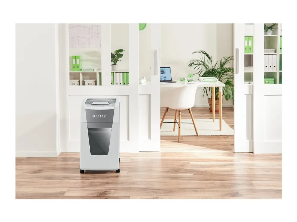 Leitz-makuleringsmaskinen er utstyrt med en 60 liters avfallsbeholder, noe som minimerer behovet for hyppig tømming og gir uavbrutt bruk. Funksjoner som motorrevers, autostopp og anti-stopp-teknologi gir brukerne en pålitelig makuleringsopplevelse. Med en kontinuerlig driftstid på 60 minutter håndterer denne makuleringsmaskinen krevende makuleringsoppgaver effektivt, noe som gjør den til et verdifullt tilskudd til ethvert kontor.