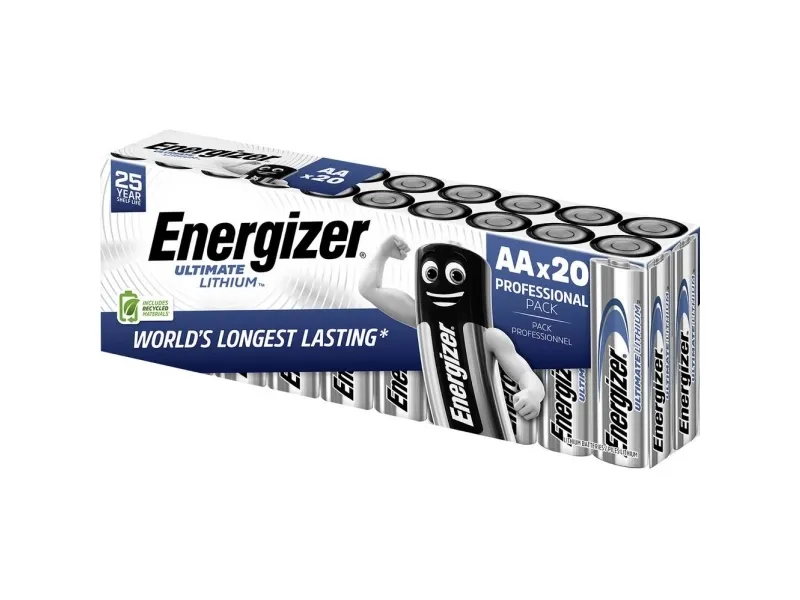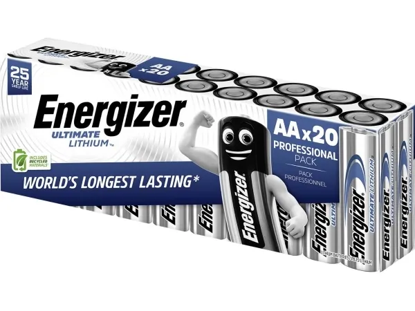 Ultimate litium-AA, 20 stk. Intet holder længere end de højtydende Ultimate litium-batterier. Alle Ultimate litium-batterier er udviklet med hensyn til sikkerhed og beskyttelse mod sejlads (ved standardanvendelse). På denne måde kan du stole på, at dine værdifulde apparater er beskyttet mod skader som følge af lækage og korrosion. Disse batterier er klar til brug under ekstreme temperaturbetingelser (-40 °C til 60 °C) og holder din opladning i op til 25 år. Dermed er Ultimate litium-batterierne det første valg, når det drejer sig om sikker strømforsyning til dine vigtigste enheder.
