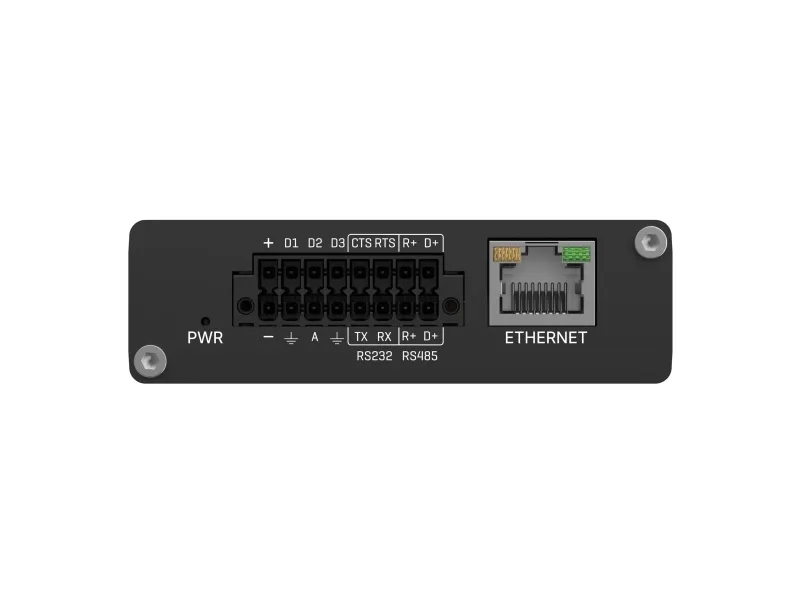 1 x GNSS - SMA 1 x RS-232 - terminalblokk 1 x RS-485 - terminalblokk 3 x digitalinngang - terminalblokk 3 x digitalutgang - terminalblokk