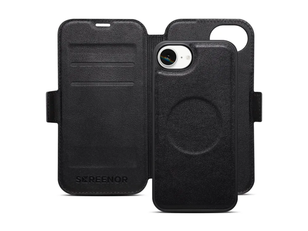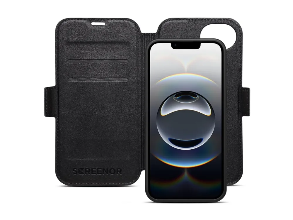 Screenor First 30160FC fra ALLit Oy er en elegant og praktisk løsning for å beskytte mobiltelefonen din. Dette 2-i-1-lommeboket har et stilig design i lær og termoplastisk polyuretan (TPU) og inkluderer et flip-deksel som åpnes fra siden, sikret med en magnetisk lukking for enkel tilgang samtidig som enhetene holdes trygge. Dette beskyttende dekselet er designet med funksjonalitet i tankene og har et kortspor for praktisk oppbevaring av viktige ting som kredittkort eller ID-kort. Det er lett, mykt og gir beskyttelse mot fall, støt og slag. I tillegg er Screenor First-dekselet kompatibelt med MagSafe.