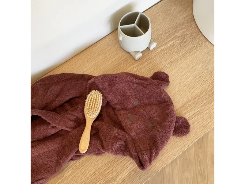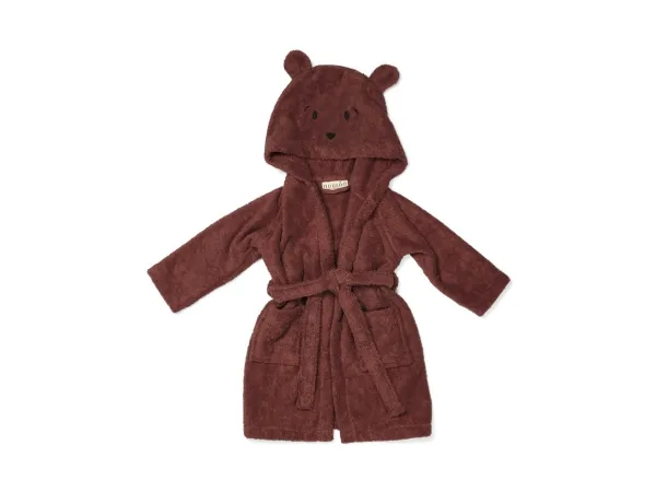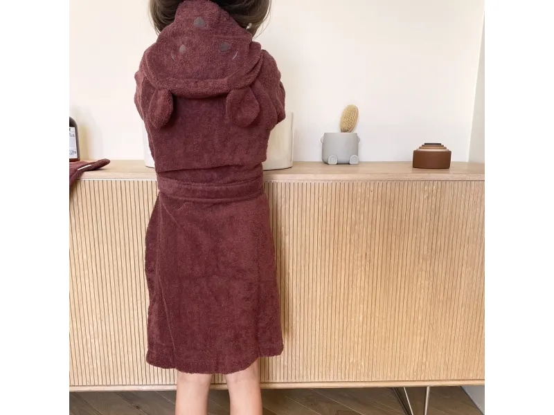 Dejlig blød og hyggelig badekåbe i 100% økologisk bomuldsfrotté, der holder dit barn varm og tør. Badekåben har to forlommer samt bindebælte.