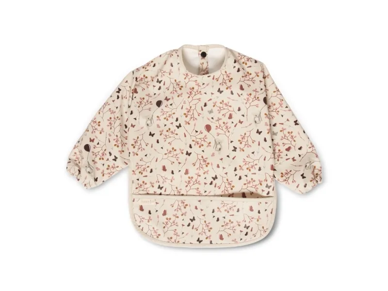 SPISEFORKLÆDE MED LANGE ÆRMER Luna spiseforklæde er et must have til småfolk, der er ved at lære at spise selv. Spiseforklædet sørger for at holde barnet ren og tør under hele måltidet. Den genanvendelige polyester gør spiseforklædet nem at rengøre med en klud, så den er klar til næste måltid.